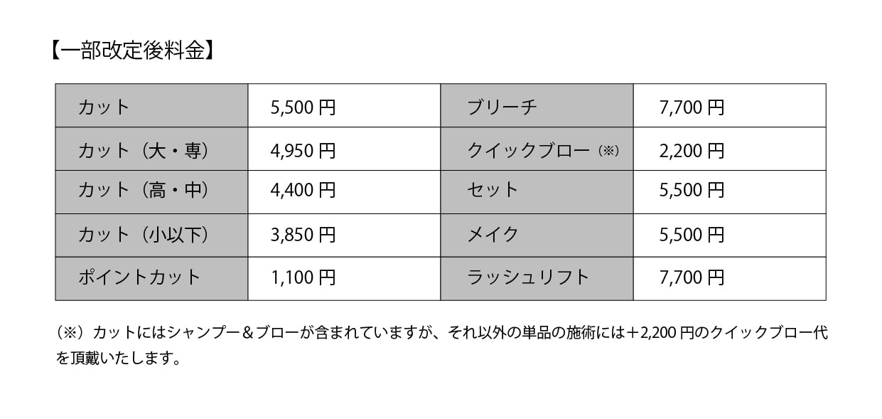 一部料金改定のお知らせ |